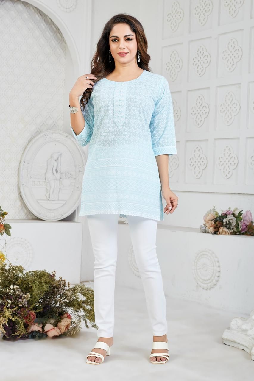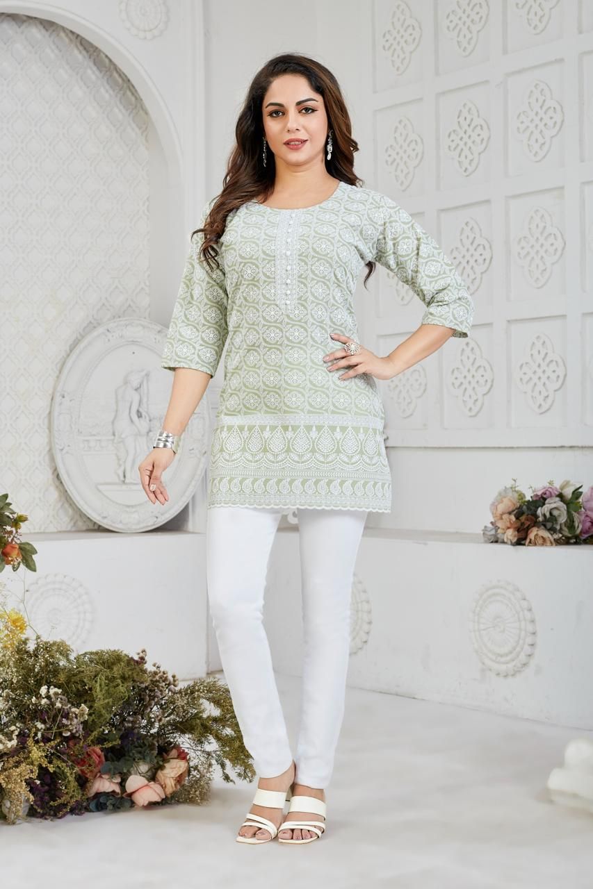 We are a leading Manufacturer, Exporter, and Supplier of this stylish Ladies Cotton Embroidered Short Kurti. Crafted from Pure Cotton, this Short Kurti features a beautiful Woven & Embroidered Design, making it perfect for Daily Wear. Made in India, this Kurti in Size M has a Hip Length / Short Length, 3/4th Sleeves, and a Round / Split Neck design. The intricate Embroidery with Self Pattern adds a touch of elegance to this versatile piece. Elevate your wardrobe with this chic and comfortable Short Kurti that effortlessly combines traditional craftsmanship with modern style.